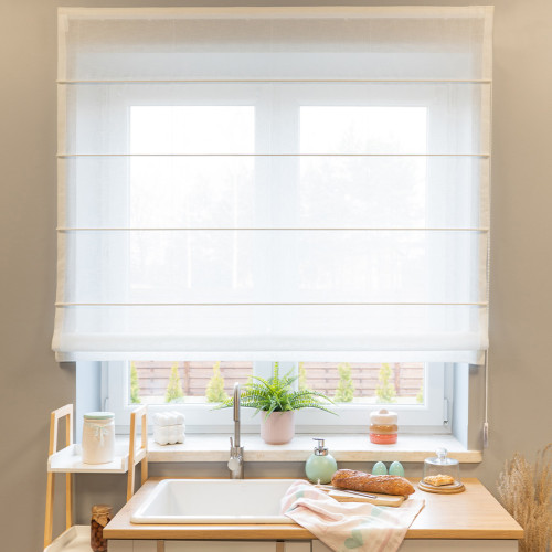 Roleta rzymska o strukturze lnu - ozdoba okna kuchni, salonu i sypialni