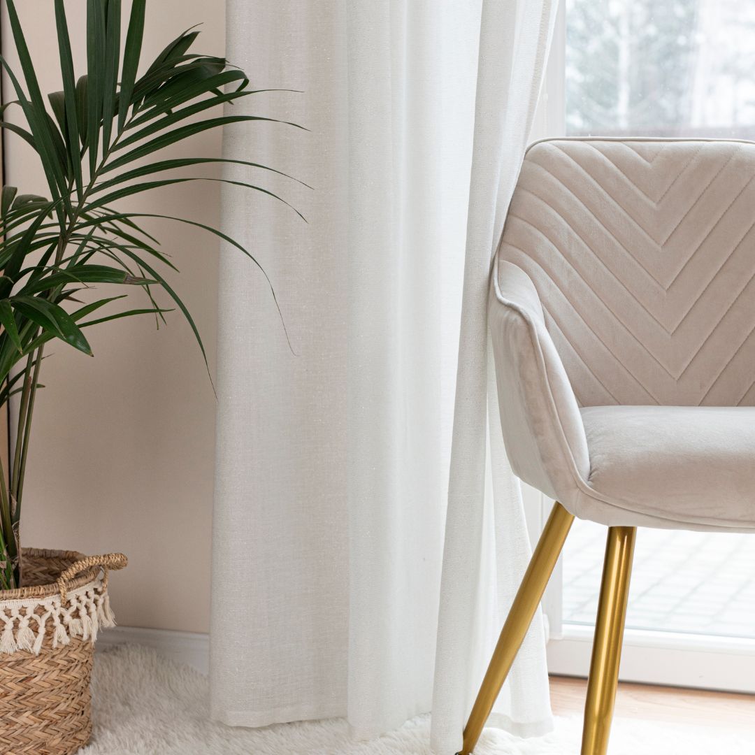 Marzysz o wnętrzu, które będzie przytulne i jednocześnie eleganckie? Nasza zasłona lniana z subtelnym połyskiem spełni Twoje oczekiwania. Miękka, przewiewna tkanina o naturalnym splocie, zdobiona delikatnymi, lśniącymi nićmi, wprowadzi do Twojego domu ciepłą atmosferę. Ciepły, seledynowy kolor dodaje jej przytulności, a praktyczna taśma marszcząca ułatwia dopasowanie do każdego okna. Zasłona doskonale przepuszcza światło, tworząc w pomieszczeniu przyjemny klimat.