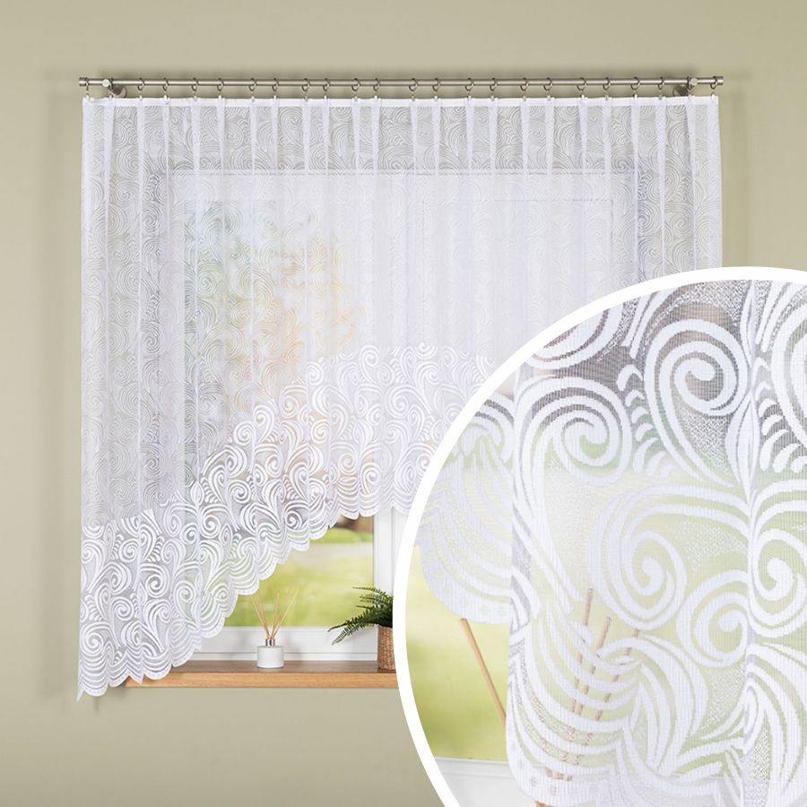Długa gotowa firana żakardowa, wykończona dołem na prosto, kolor biały, oferowana w dwóch rozmiarach, Bastia