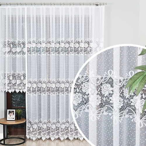Długa gotowa firana żakardowa z kwiatowym wzorem w kropki, rozmiar: 200x250 cm, lub 300x250 cm, Demetria