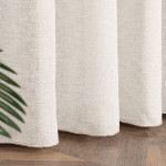 Zasłona na fleksach podwójnych posiada wszyte na stałe mikrofleksy, które są dedykowane do szyn sufitowych. Fleksy to niezwykle elegancki sposób zawieszenia zasłony, tworząc stałe fałdy, zapewniają ich równoległe rozmieszczenie i efektownie opadające. Bogata tkanina w kolorze ecru została wzbogacona o dekoracyjny element, jakim jest srebrna nitka znajdująca się po całości, która efektownie połyskuje w świetle naturalnym oraz sztucznym. Oryginalna tkanina dzięki swoim właściwościom strukturalnym i grubszym splocie świetnie się ułoży, tworząc samodzielną i elegancką dekorację okna.