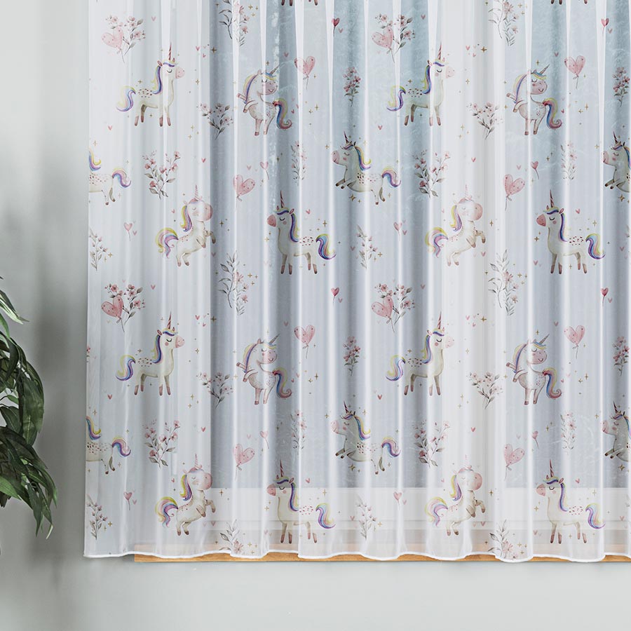 Firanka Woal "Słodkie Jednorożce" na Przelotkach – Szyta na Wymiar do Pokoju Dziecka