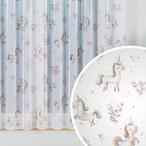 Firanka woal drukowany z ołowianką do pokoju dziecka na przelotkach, Słodkie jednorożce - szyta na wymiar