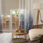 Kolor indygo, oscylujący między niebieskim a fioletowym, nadaje firance nie tylko głębię, ale także symboliczne znaczenie. Reprezentuje mądrość, roztropność i sprzyja medytacyjnemu nastawieniu, co czyni go idealnym wyborem dla salonu, gdzie często spędzamy czas na refleksji i relaksie. Nadruk liściastej rośliny o wyraźnych konturach tworzy elegancki kontrast z delikatnym woalem, nadając pomieszczeniu tajemniczą i spokojną atmosferę.