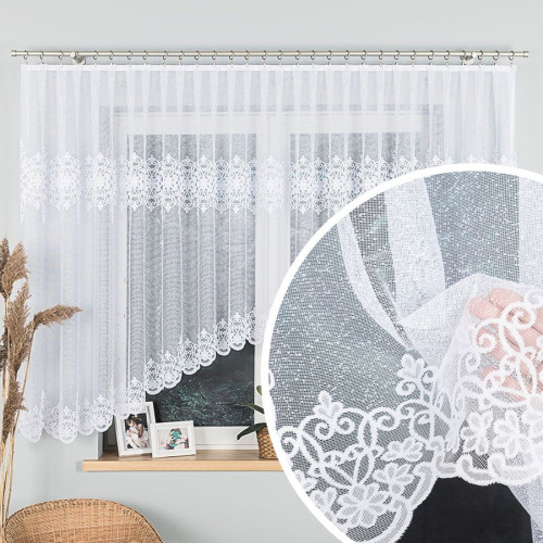 Firanka żakardowa gotowa do kuchni z delikatnym tłem, kolor biały, dostępna w kliku rozmiarach, Żaneta