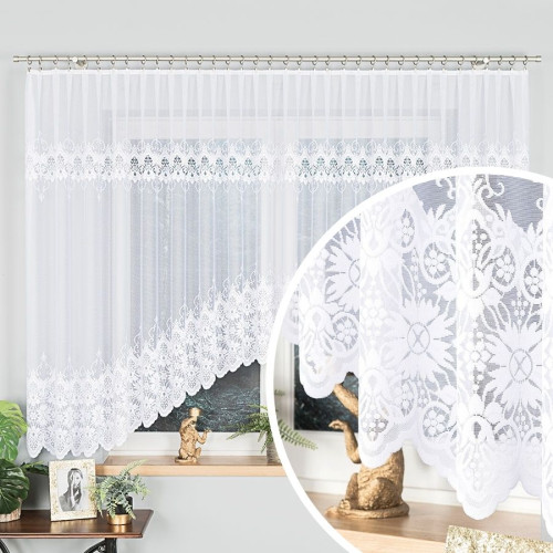 Firanka żakardowa gotowa, ze wzorem pasowym, wykończona w łuk, oferowana w kilku rozmiarach, Hanna