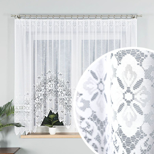 Wzorzysta, krótka firanka żakardowa - idealna dekoracja do salonu