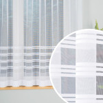 Biała firanka żakardowa z eleganckim wzorem pasowym uszyta na taśmie