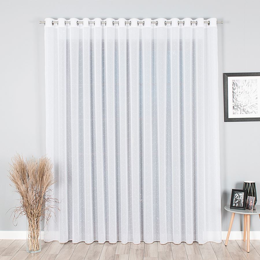 Firanka ze wzorem deszczyku z ozdobnymi pasami w kolorze jasnoszarym, z ołowianką, kolor off white, wysokość 305 cm, 001166 - sprzedawana na metry