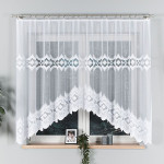 Gotowa krótka firanka żakardowa wykończona w łuk, kolor biały, oferowana w kilku rozmiarach, Lucyna