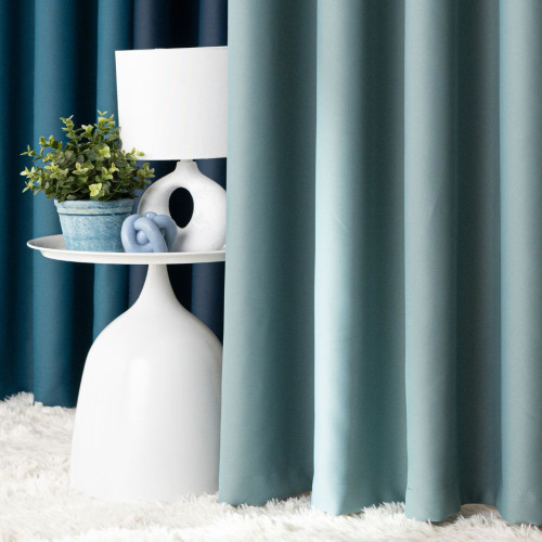Gotowa zasłona blackout na przelotkach, 85% zaciemniająca, kolor zielony szałwiowy, rozmiar 140x250 cm