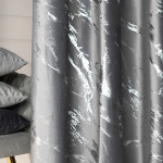Gotowa zasłona welwetowa Marma na przelotkach ze srebrnym nadrukiem, kolor jasny szary, rozmiar 140x250 cm