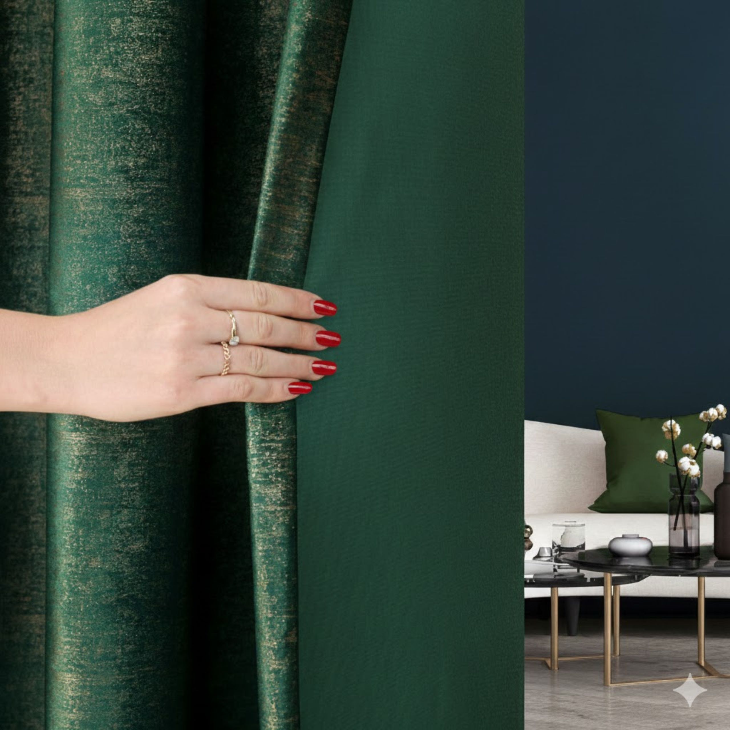 Dodaj swojemu wnętrzu klasyczny szyk i wyrafinowanie dzięki gotowej zasłonie uszytej z miękkiej welwetowej tkaniny w głębokim czarnym kolorze. Delikatny, połyskujący nadruk nadaje tkaninie subtelny blask, który pięknie podkreśla jej elegancki charakter.