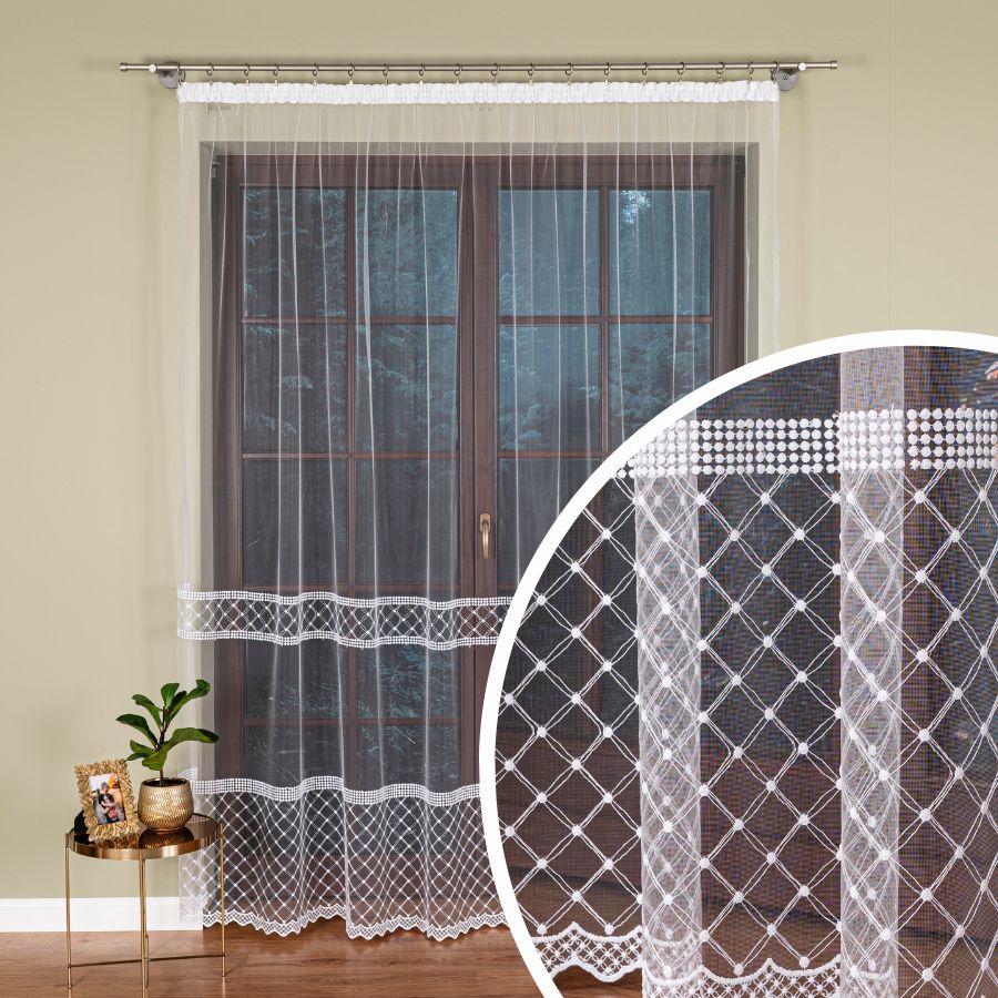 Dzięki swojej nowoczesnej formie i dekoracyjnym detalom biała firana Metis w rozmiarach 300x150 cm i 400x150 cm to doskonały wybór dla osób poszukujących eleganckiej ozdoby okna, która łączy styl,