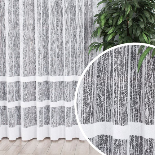 Nowoczesna firanka żakardowa z krzyżującymi się pasami na taśmie wave, wysokość do 260 cm - szyta na wymiar