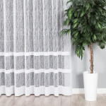 Żakardowy materiał tej firany rozjaśni wnętrze, dodając mu blasku. Możesz zestawić ją z jednokolorowymi zasłonami, aby stworzyć aranżację okna, która efektywnie zaciemni pomieszczenie. Wzór firany imitujący deszczyk, składający się z krzyżujących się kresek oraz prostopadłych pasów umieszczonych u dołu, nadaje dekoracji unikalny charakter. Doskonale sprawdzi się zarówno w salonie, jak i w jadalni.