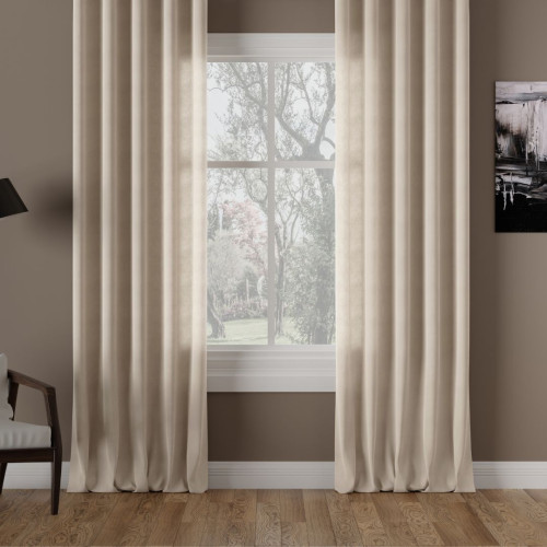 Nowoczesna zasłona do salonu na fleksach welurowa Mials kolor jasny ciepły beżowy - szyta na wymiar
