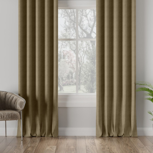 Nowoczesna welurowa zasłona na tunelu, kolor khaki, Milas - szyta na wymiar