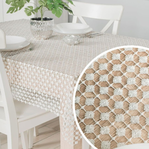 Obrus gipiurowy w kropki, kolor jasny szary z lurexem, oferowany w kilku rozmiarach, Bianca