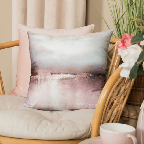 Wzór na poszewce wydaje się rozmieszczony swobodnie i przypadkowo, a jednak kryje się za nim artystyczny ład, który świadczy o niezwykłej kreatywności i doskonałym wyczuciu harmonii. Całości uzupełnia gra pastelowych różowych kolorów znajdujących się z przodu i z tyłu poszewki.