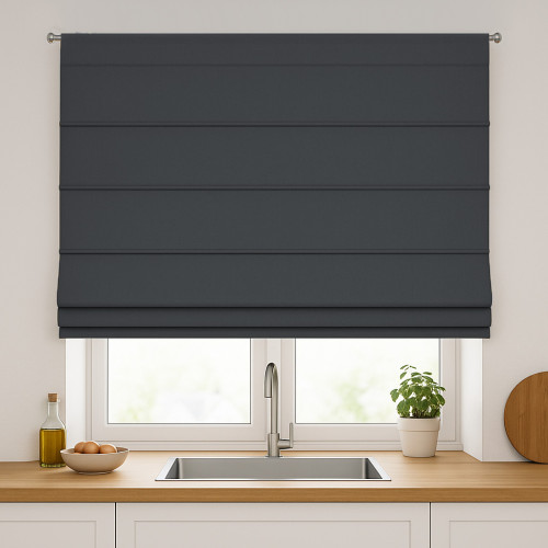 Roleta rzymska zaciemniająca na karnisz na sznurek, kolor ciemny szary - szyta na wymiar