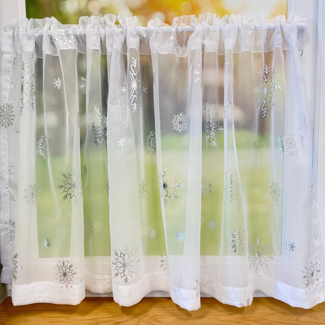 Wprowadź do swojego wnętrza odrobinę świątecznego blasku dzięki firanie ze złotym nadrukiem płatków śniegu. To gotowa dekoracja okienna uszyta z lekkiego, półprzezroczystego woalu, który pięknie przepuszcza światło i tworzy ciepłą, przytulną atmosferę w salonie, jadalni czy sypialni.