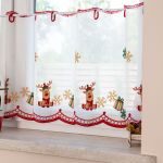 Świąteczna zazdrostka batystowa z kolorowym haftem, dostępna w dwóch wysokościach - sprzedawana na metry