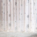 Wprowadź do swojego domu magiczny, zimowy klimat dzięki eleganckiej zazdrostce z woalu ozdobionej delikatnym srebrnym nadrukiem w formie śnieżynek. Transparentna tkanina subtelnie przepuszcza światło, tworząc przytulną atmosferę i pięknie zdobiąc okno w kuchni, jadalni lub salonie.