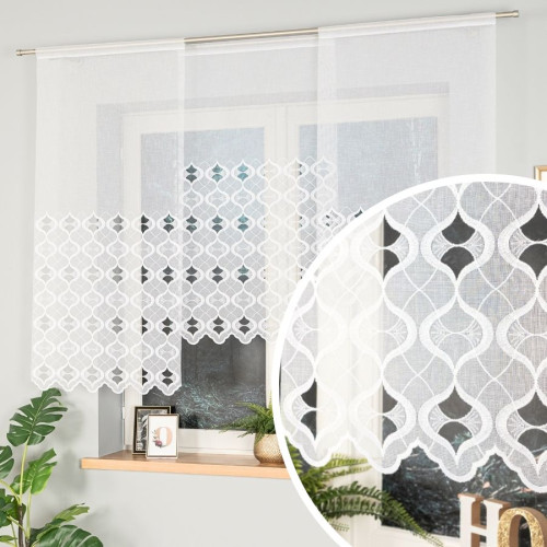Usztywniany panel haftowany z batystu, z tunelem na drążek, kolor biały, oferowany w dwóch rozmiarach: 64x120 lub 64x140 cm, Albert