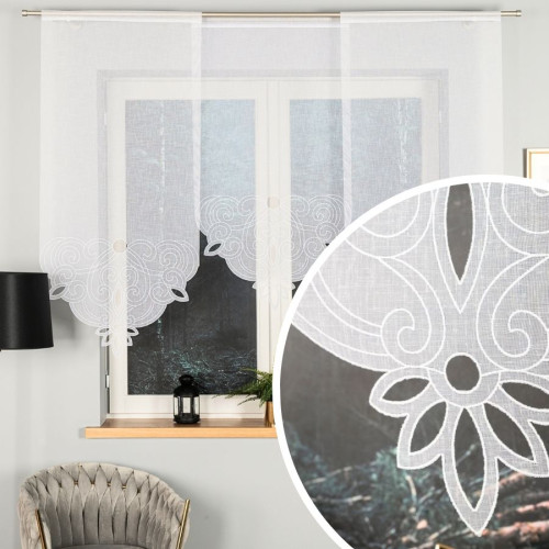 Usztywniany panel haftowany z batystu, z tunelem na drążek, kolor biały, oferowany w dwóch rozmiarach 64x120 lub 64x140 cm, Martin
