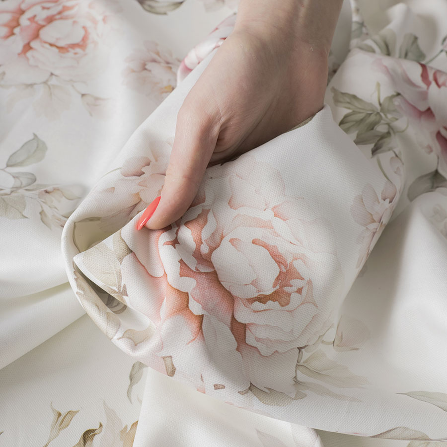 Odmień swoje wnętrze i wprowadź do niego powiew wiosennej świeżości z naszą wyjątkową tkaniną zasłonową! Przedstawiamy miękki i aksamitny welur z subtelnym, malarskim wzorem w drobne, różowe kwiatuszki i zielone gałązki. Ten botaniczny motyw, nadrukowany na białym tle, doda każdemu pomieszczeniu lekkości, elegancji i przytulnego charakteru.