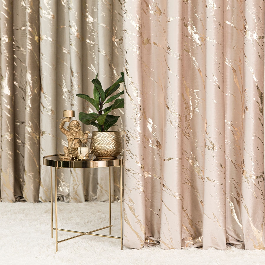Welwetowa zasłona ze złotym marmurowym nadrukiem, na taśmie marszczącej, kolor jasny szary, wysokość do 290 cm, Marma - szyta na wymiar