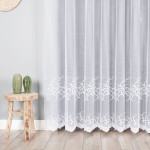 Żakardowa firana z delikatnym roślinnym wzorem na przelotkach, kolor biały, wysokość do 230 cm - szyta na wymiar
