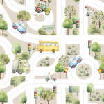 Zasłona do pokoju dziecięcego na taśmie, Ulice z autami kolor beżowy - szyta na wymiar