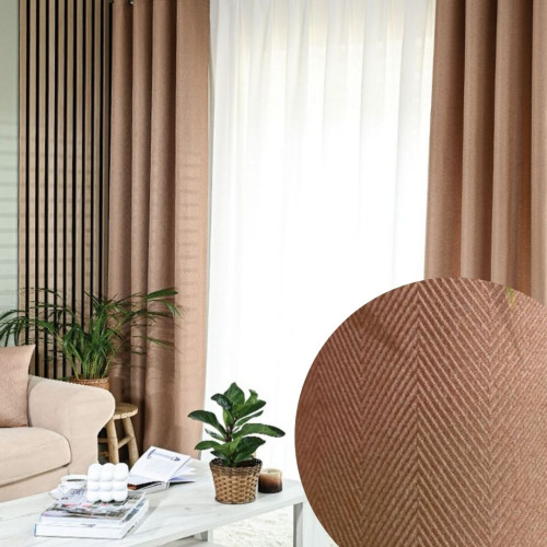 Materiał na zasłony Jodełka, kolor ciemny beżowy, wysokość 300 cm - sprzedawany na metry