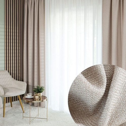 Zasłona do salonu na taśmie ze strukturalnej tkaniny, kolor ciemny beż, Molly- szyta na wymiar