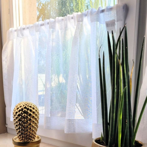Jeśli szukasz sposobu na dekorację okna Twojej kuchni, mamy rozwiązanie wprost wymarzane dla Ciebie. Zobacz naszą gotową zazdrostkę, wykonana z delikatnej etaminy ozdobionej srebrnymi kropeczkami, które błyszczą się i mienią w blasku słońca.